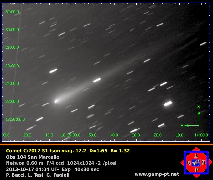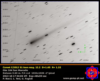 Il mattino del 17/10/2013, dall’ osservatorio astronomico 104 San Marcello Pistoiese è stata osservata la cometa C/2012 S1 ISON.
